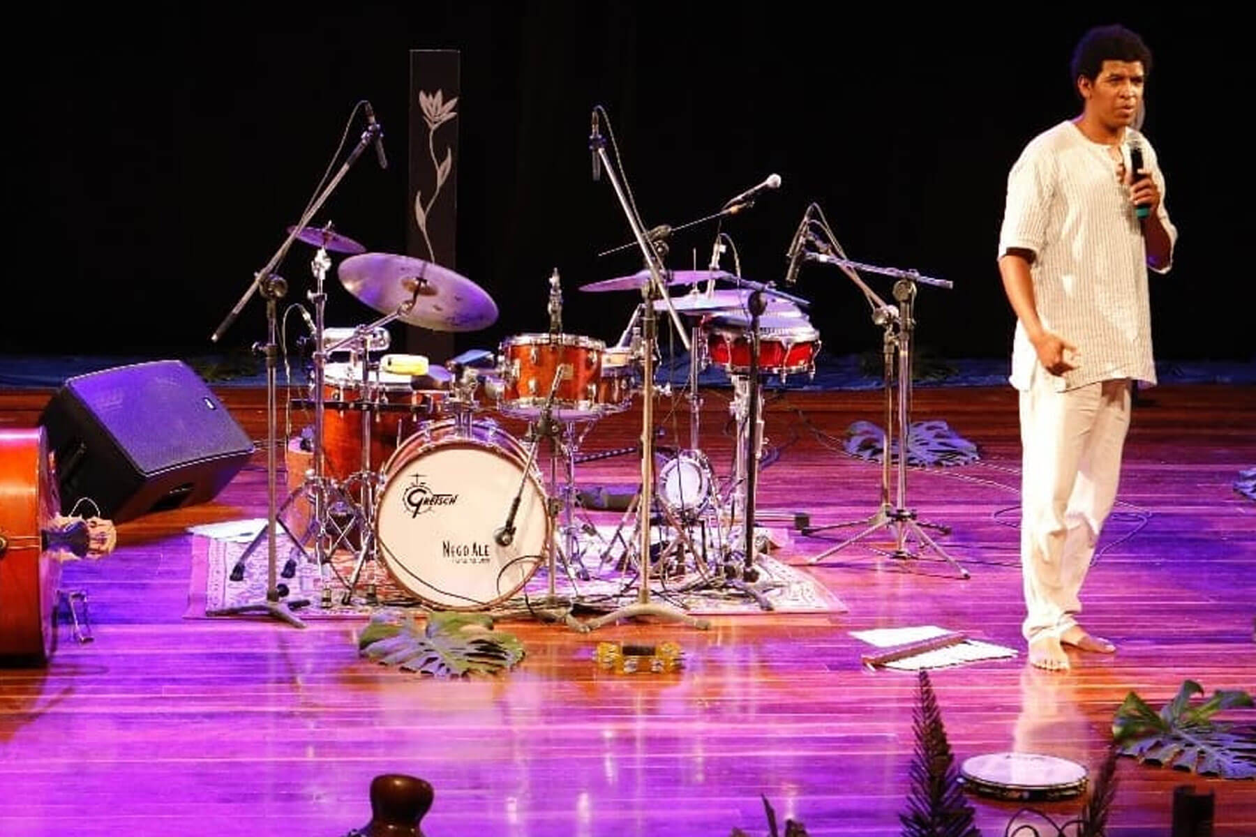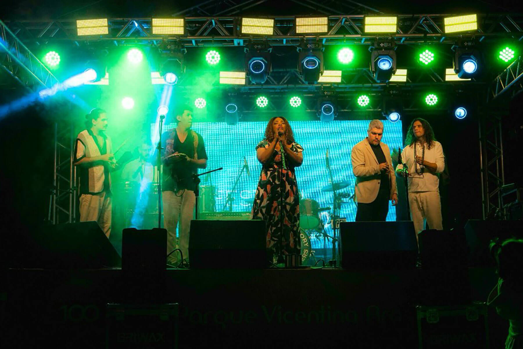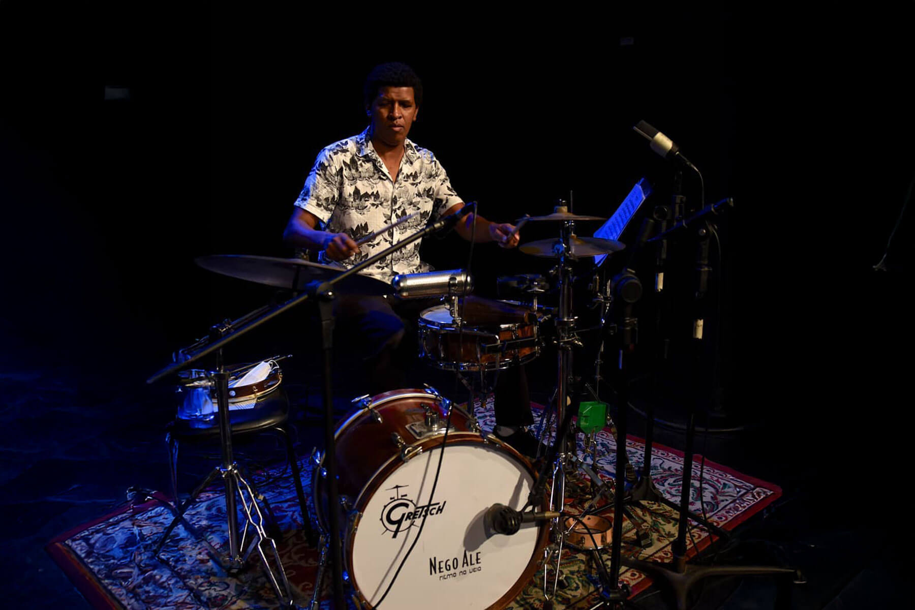 No palco, Nego Ale apresenta, por meio da percussão, a riqueza rítmica, cultural e histórica desenvolvida pela comunidade negra no país. Ao seu lado, está a voz potente de sua filha Barbara Soares, Silas Lopes no violão e vocais, Valter Dog no contrabaixo, cavaquinho e arranjos; além de Henrique Levi, na flauta.