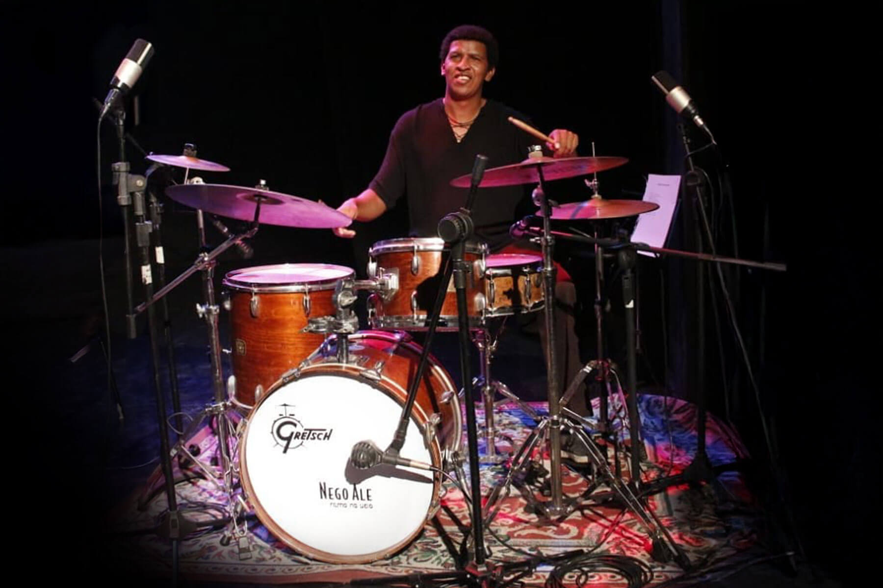 Sua maior inspiração veio ainda na juventude, ao assistir ao show “Cravo e Canela”, de Milton Nascimento. Na bateria, Robertinho Silva, acompanhado dos filhos na percussão. Aquele momento foi decisivo: ali nascia a certeza de que a música seria sua profissão e a percussão, seu caminho.